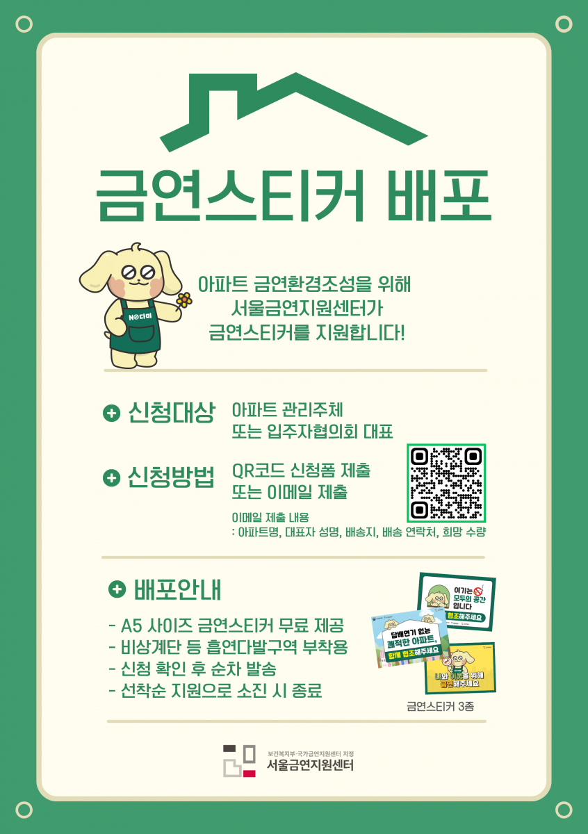 서울금연지원센터에서 공동주택 내 간접흡연 피해를 예방하고 금연문화를 조성하고자 ...